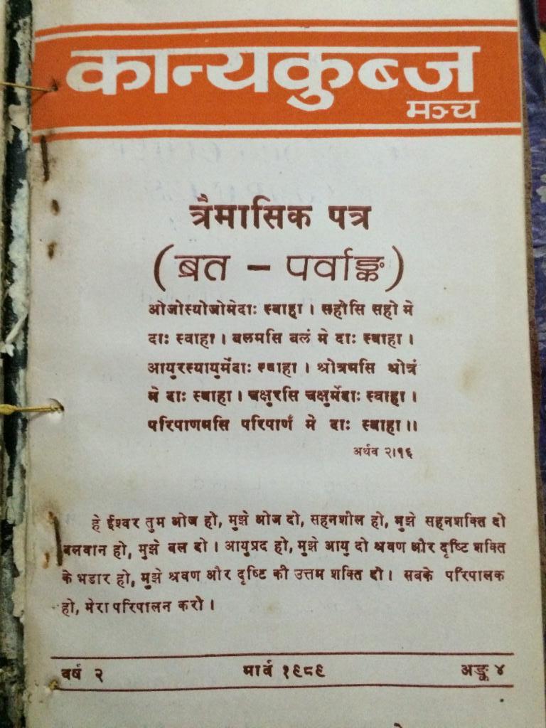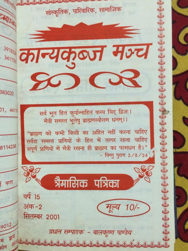 'कान्यकुब्ज मंच' त्रैमासिक पत्रिका का प्रकाशन