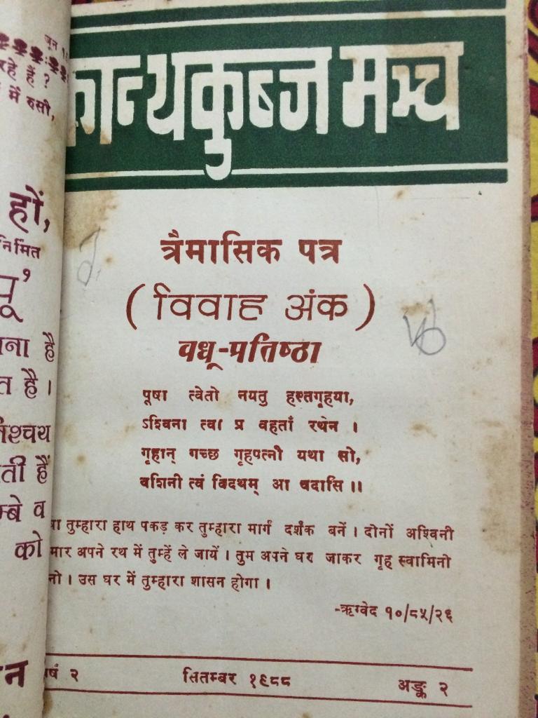 आ नो भद्राः क्रतवो यन्तु विश्वतः (अर्थ: सभी दिशाओं से महान विचार मेरे पास आएं) अभी भी उप-जाति व्यवस्था की रेखा को मिटाकर सभी ब्राह्मणों को क्षेत्रों में एकजुट करने के लिए कन्या कुब्ज मंच के पीछे एक मार्गदर्शक सिद्धांत है।